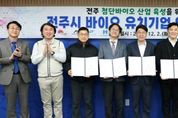 [경기뉴스원/경기뉴스1] | 첨단바이오 분야 기술력을 보유한 국내 기업들이 전주에 둥지를 틀면서 바이오산업을 새로운 성장동력으로 육성해 온 전주시의 계획에 힘이 실리게 됐다. 전주시는 2일 전주시청 3층 소회의실에서 파마로보틱스와 뉴아인, 하이퍼틱스 등 첨단바이오 분야 기술력을 보유한 3개 기업과 공동 성장을 위한 업무협약을 체결했다. 이날 협약식에는 우범기 전주시장과 세 기업의 대표 등 관계자 8명이 참석했으며, 이들은 기업 애로 해소와 산업 생태계 확장을 위한 상생 협력에 나서기로 뜻을 모았다. 이 자리에서 시는 현재 추진 중인 연구개발 인프라 조성 계획과 바이오산업 육성 방향을 설명하고, 기업들로부터 이전 계획과 기술개발 현황, 필요한 지원 사항 등을 청취했다. 특히 이번에 협약을 맺은 기업들은 모두 첨단 의료기기와 전자약 분야에서 경쟁력을 인정받은 기술 기반 기업들로 지역 바이오산업 성장을 위한 동력이 될 것으로 기대를 모은다. 구체적으로 파마로보틱스는 AI 기반 주사제 자동조제 로봇을 개발하며 TIPS와 초격차 1000+ 등에 선정된 성장기업으로, 지난 10월 본사를 전주로 이