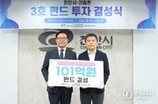 [경기뉴스원/경기뉴스1] | 천안시가 국내 최장수 엑셀러레이터(AC)와 스타트업 육성을 위한 펀드를 결성했다고 22일 밝혔다. 시는 이날 시청 소회의실에서 101억 원 규모의 ‘크립톤 지역 창업 생태계 라이콘 펀드’ 운용을 위해 ㈜크립톤과 ‘3호 펀드 투자 결성식’을 개최했다. 해당 펀드는 민관이 협력해 지역 내 기업가형 소상공인과 유망 창업기업을 발굴·육성하고, 혁신적인 지역 기반 사업모델을 지원하기 위해 조성하는 투자 기금이다. 2027년까지 3년간 7억 원을 출자해 101억 원 규모의 펀드를 조성하고 스타트업을 집중 지원할 계획이다. 천안시는 천안과학산업진흥원을 통해 펀드 출자자(LP)로 참여하며, 해당 펀드는 출자금의 2배 이상을 천안시 소재 기업에 투자한다. 시는 펀드 운용을 통해 지역 스타트업이 유니콘기업으로 성장할 수 있는 발판을 조성할 계획이다. 펀드 운용사인 ㈜크립톤은 2000년 설립된 국내 최장수 액셀러레이터(AC)로, 약 550억 원 규모의 운용자산(AUM)을 보유하고 있다. 올해 10월 천안시 그린스타트업타운 내 지사 설립을 완료하며 지