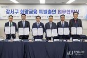 [경기뉴스원/경기뉴스1] | 서울 강서구는 경영에 어려움을 겪는 중소기업과 소상공인을 지원하기 위해 ‘희망금융 특별신용보증’ 사업을 시행한다. 이번 사업은 시중보다 낮은 금리로 경영자금을 지원하며, 총 보증 규모는 275억 원이며 업체당 최대 5천만 원까지 지원받을 수 있다. 대출금리는 기준금리에 대출자의 신용도 등을 반영한 가산금리(1.6~1.8%)를 더하고, 서울시 이자 지원분(1.8%)을 차감해 산정된다. 2월 말 기준 약 2.61~2.81% 수준이다. 앞서 구는 지난 6일 강서구청 대회의실에서 우리은행, 하나은행, 신한은행, 새마을금고, 서울신용보증재단과 ‘희망금융 특별출연 업무협약’을 체결하고, 총 22억 원을 공동 출연했다. 서울신용보증재단은 이를 바탕으로 출연금의 12.5배인 275억 원 규모의 신용 보증을 지원한다. 대출 기간은 5년으로, 1년 차에는 이자만 납부하고 이후 4년간 원금과 이자를 함께 상환하면 된다. 대출금은 운전·시설·기술개발 자금으로만 사용할 수 있으며, 다른 용도로 사용할 경우 이자 지원을 받을 수 없다. 또한 사치, 향락 등 재보증 제한업종, 휴·폐업