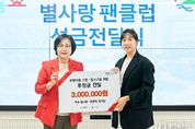 [경기뉴스원/경기뉴스1] | 서울 강동구는 지난 17일 가수 별사랑과 팬클럽 ‘별사탕’ 관계자 등이 참석한 가운데 '가수 별사랑 팬클럽 성금 전달식'을 개최했다고 24일 밝혔다. 가수 별사랑은 팬클럽 별사탕과 함께 지원이 필요한 아동·청소년을 위해 성금 300만 원을 전달했다. 이번 성금은 강동구 드림스타트 아동을 위한 장학금으로 사용될 예정으로, 경제적 여건이 어려운 아동·청소년의 성장과 교육 지원에 도움이 될 것으로 기대된다. 특히 이번 기부는 별사랑이 2024년에 이어 두 번째로 강동구에 전달한 성금이라는 점에서 의미를 더했다. 별사랑과 팬클럽 별사탕은 꾸준한 나눔을 이어오고 있다. 강동구는 2024년 드림스타트 아동 50가구를 대상으로 팬클럽 별사탕이 후원한 간편식과 문구류 등을 담은 ‘사랑의 꾸러미’를 만들어 전달한 바 있다. 별사랑은 모 방송사의 트로트 경연 프로그램에 출연해 이름을 알린 가수로, 현재 강동구 둔촌동에 거주하며 활발한 활동을 이어가고 있다. 팬클럽 별사탕 또한 꾸준한 기부와 봉사활동을 펼치고 있다. 이수희 강동구청장은 "아이들을 위해 따뜻한 마음을 모아주신 별