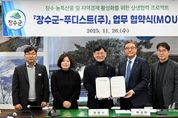 [경기뉴스원/경기뉴스1] | 장수군은 26일 군청 회의실에서 B2B 식자재 전문 기업인 푸디스트 주식회사(사조그룹 계열)와 지역 경제 활성화와 농가 상생 발전을 위한 전략적 업무협약을 체결했다고 밝혔다. 이날 협약식에는 최훈식 장수군수를 비롯해 푸디스트 주요 실무·책임자가 참석해 군 농특산물·레드푸드 판로 확대와 지역 일자리, 축제 홍보, 사회공헌으로 이어지는 다양한 협력 의지를 공유했다. 장수군 대표 축제인 ‘장수한우랑사과랑축제’로 전국적으로 유명해진 장수 농특산물과 레드푸드에 대한 소비자들에 관심이 매우 높아졌다. 이에 푸디스트는 장수 농가와의 직거래를 확대해 농특산물 수급 불안정을 완화하고 합리적인 가격체계를 마련함으로써 지역 농업의 지속 가능성을 높이고자 협약을 추진하게 됐다. 이번 협약으로 장수군과 푸디스트는 한우, 사과, 토마토, 오미자 등 군의 대표 농특산물과 레드푸드에 대해 제품 기획, 상품 개발, 유통 등 전반에 걸친 전략적 협력 체계를 구축해 안정적인 판로를 개척한다. 더불어 장수 지역 농가와 직접 계약을 체결해 선제적으로 물량을 확보하고 기업과 농민이 함께 성장할 수