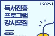[경기뉴스원/경기뉴스1] | 삼척교육문화관은 12월 16일 삼척교육문화관 누리집을 통해 2026년 독서진흥프로그램 강사 공개모집 공고문을 게시할 예정이라고 밝혔다. 강사 공개모집 지원 자격은 프로그램별 해당 분야 전문자격증 소지자 또는 관련 경력자, 학위 소지자 등이며, 모집 분야는 △유아·어린이 독서동아리(4개) △독서인문교육프로그램(독서토론, 한 학기 한 권 읽기) △독서진흥프로그램(찾아가는 이야기마실, 그림책 어학당 한글도깨비, 유치원 책놀이 등) 등 총 3개 분야 10개 프로그램이다. 이번 강사 모집 공고는 12월 16일 이후 삼척교육문화관 누리집 공지사항에서 확인할 수 있으며, 서류 접수 기간은 2026년 1월 2일부터 1월 13일까지이다. 지원을 희망하는 강사는 공고문을 참고해 지원서 등 관련 서류를 준비한 뒤, 교육문화관 2층 문헌정보과 사무실로 방문 제출하면 된다. 장병진 관장은 “새로운 지역 인재들이 이번 강사 공개모집에 지원해 문화관에서 진행하는 독서프로그램에 활력소가 되어주기를 바란다”고 전했다.