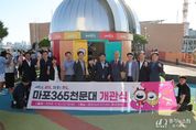[경기뉴스원/경기뉴스1] | 마포구는 서울화력발전소 내 주민편익시설을 ‘마포365구민센터’(토정로 98)로 조성하고 9월 10일 오후 개관식을 개최했다. ‘마포365구민센터’는 연면적 7,613.87㎡, 지하 1층 ~ 지상 5층 규모로 조성됐다. 한강변의 지리적 이점을 살린 센터는 현재 체육, 문화 활동 등을 함께할 수 있는 복합공간으로 주민을 반갑게 맞이하고 있다. 이날 개관식에는 박강수 마포구청장을 비롯해 지역 주민 등 300여 명이 참석해 센터의 탄생을 축하했다. 개관식은 마포구립합창단의 축하 공연을 시작으로 사업 경과 보고, 박강수 마포구청장의 기념사, 내빈 축사, 테이프 커팅식, 기념 촬영 순으로 진행됐다. 박강수 마포구청장은 “마포365구민센터는 여가와 문화, 배움을 함께 누릴 수 있는 체육 문화 활동 거점으로서 큰 의미를 지닌다”라며 “마포365구민센터가 365일 구민의 건강과 화합을 다지는 곳으로 자리매김하길 기대한다”라고 말했다. 이후 박강수 마포구청장은 센터의 옥상에 조성된 ‘마포365천문대’부터 5층 야외전망대, 2~4층 생활체육시설, 1층 ‘만남의