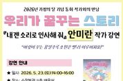 [경기뉴스원/경기뉴스1] | 부산광역시립중앙도서관은 다음달 23일 중앙도서관 수정분관에서 초등학생 4~6학년 30명을 대상으로 가정의달 기념 안미란 동화 작가와의 만남 ‘우리가 꿈꾸는 스토리’를 운영한다. 이번 프로그램은 어린이 독자들이 작가와 직접 만나 소통하며 작품의 창작 과정에 대한 이해를 도와 특별하고 깊이 있는 독서 경험을 제공하기 위해 마련했다. 프로그램은 부산에서 활동하는 안미란 동화 작가가 장애 인식 개선동화 ‘내겐 소리로 인사해 줘’의 진정한 의미와 창작과정에 대해 알려준다. 또한, 연대·사랑·인권을 주제로 ‘본다는 것’에 대한 의미를 다시 생각하며 모두가 더불에 사는 세상에 대해 이야기를 나눌 예정이다. 참가 희망자는 오는 29일 오전 10시부터 부산시교육청 통합예약포털을 통해 선착순으로 신청하면 된다. 자세한 내용은 중앙도서관 홈페이지를 참고하거나, 수정분관 어린이실로 문의하면 된다. 한동인 중앙도서관장은 “어린 학생들이 이번 강연을 통해 장애인에 대한 배려와 존중의 가치에 대해 깊히 이해하는 시간이 되길 바란다”고 말했다.