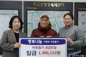 [경기뉴스원/경기뉴스1] | 평택시 지산동에 거주하는 윤문상(87) 어르신은 지난 9일 지산동 행정복지센터에 폐지를 팔아 모은 148만 원을 이웃돕기 성금으로 기부해 지역사회에 감동을 주고 있다. 고령과 넉넉지 않은 상황에서 폐지를 모아 마련한 148만 원 전액을 기부하며 “길에서 모은 돈이지만 나누는 것이 맞다고 생각한다. 나보다 더 어려운 이웃에게 전달해 달라”고 소박한 뜻을 전했다. 이에 노승희 지산동장은 “지역 내 나눔 문화를 확산하는데 모범을 보여주신 어르신께 깊이 감사드리며, 따뜻한 마음을 어려운 이웃에게 잘 전달하겠다”고 전했다. 한편, 전달된 수익금은 평택시행복나눔본부 지정기탁 절차를 거쳐 지산동 저소득층 가정에 지원될 예정이다.