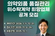 [경기뉴스원/경기뉴스1] | 경기도보건환경연구원은 오는 24일까지 ‘2026년 의약외품 품질검사 위·수탁계약’ 참여를 희망하는 제조·수입업체를 모집한다. ‘의약품 등 제조업 및 수입자의 시설기준령’에 따르면 의약외품은 품질검사를 위한 시설을 갖추고 자체 품질관리를 하거나 식약처 지정 시험검사기관과의 품질관리 위수탁 계약을 통해 품질을 관리해야 한다. 연구원은 2008년부터 매년 품질관리 위수탁 계약을 통해 품질검사 시설을 갖추지 못한 도내 소규모 의약외품 업체의 품질검사를 수행하고 있다. 지원 대상은 도내 사업을 등록한 의약외품 제조 및 수입업체이며, 품질관리 지원 분야는 보건용 마스크와 생리대 등 도민의 생활과 밀접한 의약외품이다. 제출 서류와 양식 등 모집 관련 자세한 사항은 경기도와 경기도보건환경연구원 누리집을 통해 확인할 수 있으며, 작성된 자료는 전자우편으로 접수할 수 있다. 연구원은 24일까지 희망업체를 모집하고 경기북부 소재, 신규 및 소규모 의약외품 업체를 우선으로 선정해 12월 1일 발표할 계획이다.