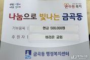 [경기뉴스원/경기뉴스1] | 수원시 권선구 금곡동 행정복지센터는 관내 바라온교회에서 조손가정을 위한 성금을 후원받았다고 밝혔다. 이번 성금은 경제적인 부담과 돌봄의 어려움을 동시에 겪는 조손가정의 실질적인 도움을 제공하고자 교회신도들의 자발적인 참여로 마련됐다. 금곡동 행정복지센터는 해당 성금을 관내 저소득 조손가정에 전달 예정이다. 바라온 교회 이예훈 목사는 “모두가 힘든 시기일수록 지역사회와 함께해야 한다고 생각했다”며, “작은 정성이지만 위로와 도움이 되기를 바라는 마음으로 후원을 준비했다”고 전했다. 장성임 동장은 “지역을 위해 따뜻한 나눔을 실천해 주신 바라온교회에 깊이 감사드린다”며, “행정복지센터에서도 소중한 마음이 잘 전달될 수 있도록 최선을 다하겠다”고 말했다.