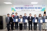 [경기뉴스원/경기뉴스1] | 수원특례시의회는 지난 2일 의회 세미나실에서 수원시의회 의원 연구활동 지원 심의위원회 위원 위촉식을 개최했다. 이번 위촉식은 최근 개정된 ‘수원시의회 의원 연구활동 지원 조례’에 따라, 연구 활동의 객관성과 전문성을 한층 높이기 위해 추진됐다. 의회운영위원회의 추천을 받은 행정, 경영, 교육, 도시, 외교 5개 분야의 전문가 6명이 신규 위원으로 선임됐다. 이날 행사에는 김정렬 부의장(더불어민주당, 평·금곡·호매실) 비롯해 더불어민주당 교섭단체 대표 김동은 의원(더불어민주당, 정자1·2·3), 국민의힘 교섭단체 대표 박현수 의원(국민의힘, 평·금곡·호매실)이 참석해 위촉장을 수여하고, 연구활동의 내실 있는 운영을 위한 적극적인 역할을 당부했다. 새롭게 위촉된 위원들은 향후 2년간 활동하며 ▲의원연구단체 연구계획 승인 ▲연구활동비 적정성 심의 ▲연구용역 결과보고서 평가 등을 수행하게 된다. 김정렬 부의장은 “수원특례시의회 의원 연구활동은 시의원과 전문가가 함께 시민 삶의 질 향상을 위한 정책 역량을 높이고 공부하는 의회 조성을 위한 중요한 활동”이라며, “풍부한 전문성과