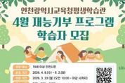 [경기뉴스원/경기뉴스1] | 인천광역시교육청평생학습관은 오는 3월 23일부터 시민 강사의 전문 지식과 경험을 지역 주민과 공유하는 ‘4월 재능기부 프로그램’ 학습자를 모집한다. 이번 프로그램은 시민이 직접 강사로 나서 지역사회와 함께 전문성을 나누는 참여형 평생학습 과정으로, 4월 운영 강좌는 ‘쏙쏙 클래식’, ‘치매예방 힐링 퍼즐’, ‘한중 지명에 얽힌 역사문화와 지혜’, ‘요들송 배우기’ 등 4개 과정을 마련했다. 강좌는 4월 8일부터 운영되며, 수강 신청은 23일 오전 10시부터 평생학습관 누리집에서 선착순 진행된다. 자세한 사항은 누리집 공지사항을 확인하거나 평생교육부로 문의하면 된다.