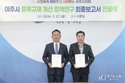 [경기뉴스원/경기뉴스1] | 여주시의회가 2025년 추진한 ‘여주시 중복규제 개선 정책연구’ 보고서를 집행부에 전달하여 향후 규제개선 추진을 위한 협력 기반이 마련됐다. 여주시의회는 3월 27일 오전 시장실에서 '여주시 중복규제 개선 정책연구' 최종보고서 전달식을 개최했다고 밝혔다. 이날 전달식에는 이충우 여주시장을 비롯한 집행부 관계자와 여주시의회 박두형 의장, 연구수행기관 관계자 등이 참석해 연구결과를 공유하고 정책 반영 방안을 논의했다. 이번 연구는 여주시의회 의원연구단체인 '여주시 중복규제 개선 정책 연구모임'이 주관해 2025년 6월부터 약 6개월간 수행됐으며, 수도권정비계획법과 한강수계법 등 중첩 규제로 인한 지역 발전 제한 문제를 분석하고 합리적인 개선 방안을 도출하는 데 목적을 두고 추진됐다. 여주시의회 박두형 의장은 “연구단체 보고서 전달은 중복규제 개선을 위한 실질적인 출발점이라는 점에서 의미가 있다”며 “연구 결과가 효과적인 정책으로 이어질 수 있도록 집행부의 적극적인 검토를 당부한다”고 말했다. 이충우 여주시장은 “환경부 등 관계기관에 실효성 있는 규제 개선을 적극 건의하겠다”