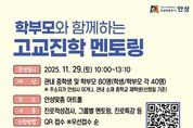 [경기뉴스원/경기뉴스1] | 안성시는 오는 11월 29일 오전 10시, 안성맞춤 아트홀에서 관내 중학생과 학부모를 대상으로 ‘학부모와 함께하는 고교진학 멘토링’을 실시한다고 밝혔다. 이번 멘토링은 ‘진로탐색, 함께 걸어요! 학부모와 자녀가 함께 만드는 고교진학 로드맵’ 이라는 슬로건 아래, 학생들이 자기주도적으로 진로를 설계하고, 학부모가 효과적으로 자녀의 진로를 선택할 수 있도록 돕는 데 중점을 두고 있다. 특히, 가정과 지역사회가 함께하는 진로교육 협력체계를 구축함으로써, 지역 교육공동체 역량 강화와 진로교육 환경 개선을 동시에 도모할 계획이다. 본 프로그램은 안성시 주소지를 두고 있거나 관내 중학교 재학 중인 중학생과 학부모 총 80명을 대상으로 하며, 신청은 10월 1일(수)부터 11월 7일(금)까지 QR코드를 통해 선착순 접수가 가능하다. 행사는 ▲진로 특강 및 검사 해석(80분) ▲커리어맵 실습(30분) ▲그룹별 멘토링(60분) 등이 진행되며, 전문 강사와 멘토가 참여해 실질적이고 체계적인 진로·진학 설계를 돕는다. 그룹 멘토링은 참가 학생 40명을 8명씩 5개 그룹으로 나누어 맞춤형 지도가 이루어질