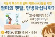[경기뉴스원/경기뉴스1] | 서울 은평구는 오는 26일 부모의 마음을 돌보고 건강한 양육 방향을 제시하는 프로그램 ‘엄마의 멘탈, 안녕하십니까?’를 운영한다고 밝혔다. 이번 프로그램은 은평구립도서관이 서울시 북스타트 ‘엄마 북(Book)돋움’ 사업과 연계해 부모가 양육의 의미를 되짚어볼 수 있도록 마련됐다. 프로그램은 ▲완벽하지 않아도 괜찮은 부모 ▲기다림의 양육 ▲넘어져도 다시 일어서는 아이로 키우기 ▲나를 잃지 않는 육아 등으로 구성됐으며, 양육 과정에서의 불안을 완화하고 정서적 회복을 지원하는 내용으로 진행될 예정이다. 은평구립도서관 관계자는 “부모가 자신의 마음을 돌아보고 서로의 경험을 나누는 시간이 되길 바란다”며 “잠시 멈춰 서서 스스로를 돌보는 계기가 되기를 기대한다”고 말했다. 신청 대상은 영유아 및 초등 자녀를 둔 부모 20명이며, 4월 26일 은평구립도서관에서 약 90분간 진행된다. 접수는 4월 10일부터 은평구립도서관 누리집 ‘문화행사 신청’에서 가능하다.