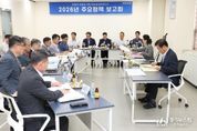 [경기뉴스원/경기뉴스1] | 반려동물 헬스케어 상용화 플랫폼 개발, 국가바이오자원 산업화 허브 구축 등 정읍의 미래 청사진을 그릴 핵심 사업들이 윤곽을 드러냈다. 정읍시는 지난 2일부터 11일까지 5일간 이학수 시장 주재로 ‘2026년 주요정책 발굴 보고회’를 갖고 미래 발전 방안을 모색했다. 이번 보고회는 ▲주요 예산 사업 77건 ▲부서별 신규 시책 185건 ▲인구 시책 44건 ▲공약사업 91건의 주요 시책을 공유·점검하는 자리였다. 특히 실현 가능성과 파급 효과, 문제점·해결방안을 함께 모색하는 토론방식으로 운영해 실효성을 높였다. 논의된 주요 시책으로는 ▲반려동물 헬스케어 상용화 플랫폼 개발 ▲국가바이오자원 산업화 허브 구축 ▲무성서원 유교수련원 운영 ▲연지동 행정복합문화타운 건립 ▲내장호 치유관광지 기반조성 ▲환경교육도시 공모 ▲서남권 광역 생활자원회수센터 시설 개선 ▲수성~구룡 간 연결도로 개설사업 ▲지역활력타운 조성 ▲재해예방 감곡천(통석지구) 지방하천 정비 ▲수성 근린공원 지하공영주차장 조성 ▲스마트 과수원 특화단지 조성 등이 제시돼 정읍의 미래 먹거리 확보와 경쟁력 향상에 대한 기대를