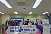 [경기뉴스원/경기뉴스1] | 충청북도교육청 직속기관 교육연구정보원은 2일, 충북교육의 철학과 비전을 바탕으로 교사들의 전문성 강화와 학교현장 발전을 위한 학습연구년 정책개발연구 최종보고회를 개최했다. 최종보고회는 지난 9월에 실시된 중간보고회에서 논의됐던 연구 내용을 보완하고 연구 성과를 마무리하는 활동으로 교사의 연구문화 조성, 충북교육의 질 향상, 현장 밀착형 실행연구, 역량개발 강화를 통한 학교현장지원을 목표로 진행됐다. 학습연구년 총 48명(유아4, 초등22, 중등22)의 교사가 18개의 팀을 이루어 세미나실(6팀), 학습연구년실(6팀), 언플러그드활동실(6팀)에서 ▲교육시책 ▲초‧중등 IB 프로그램 ▲초등 공동교육과정 ▲중등 참여형 수업 등 18개의 주제에 대해 발표했다. 이찬동 교육연구정보원장은 “이번 최종보고회는 학습연구년 교사가 주제별로 연구한 정책연구의 최종 운영성과를 공유하고 충북교육과 학교현장의 발전을 위한 유의미한 시간이었다. 앞으로도 교육연구정보원은 학습연구년 교사가 정책연구 역량을 함양하고 학교현장과 정책을 잇는 다양한 활동을 적극적으로 지원하겠다.”라고 말했다.