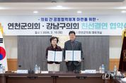 [경기뉴스원/경기뉴스1] | 강남구의회는 10일 연천군의회를 방문해 지방의회간 우호 증진 및 공동발전을 위한 친선교류 강화를 논의했다. 친선결연 협약식은 연천군 임시회 본회의가 종료한 후 진행했으며 이호귀 의장·복진경 부의장·이동호 운영위원장·손민기 의원이 참석해 친선결연 논의 및 상호 협력 추진을 위한 차담회를 진행하며 문화시설 등을 시찰했다. 주요 협약 내용으로 지역경제 활성화를 위한 교류 추진, 기관 간 협력 활동을 통한 정보교환 및 상호발전 방안 협의, 기관 간 공동이익을 위한 분야별 협력 추구, 그 밖에 상호 발전을 위해 필요한 사항이 논의됐다. 이호귀 의장은 답사를 통해“연천군이 지역 발전과 생태 보호에 힘써온 노력에 진심 어린 존경을 표한다”라며, “지방자치 발전과 지역 간 상생의 모범을 만들기 위해 연천군의회와 더욱 긴밀히 협력하겠다”라고 말했다.