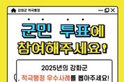 [경기뉴스원/경기뉴스1] | 강화군은 오는 10월 27일부터 10월 31일까지 5일간 강화군 홈페이지를 통해 ‘2025년 강화군 적극행정 우수사례 군민 투표’를 실시한다고 밝혔다. 이번 투표는 행정에 대한 군민의 체감도와 참여를 높이기 위해 마련된 것으로, 강화군 각 부서에서 제출한 18건의 적극행정 우수사례 중 1차 심사를 통해 선정된 8건을 대상으로 군민이 직접 우수사례를 선택할 수 있다. 투표는 강화군청 홈페이지 ‘적극행정 우수사례 투표’ 배너를 통해 간편하게 참여할 수 있으며, 투표 결과는 군 내부 심사 점수와 합산하여 ‘적극행정 우수사례 및 우수공무원’ 선정에 반영될 예정이다. 강화군은 이번 군민 투표를 통해 현장 중심의 적극행정 성과를 널리 공유하고, 공직자의 적극적인 업무 추진 문화를 확산시켜 나간다는 방침이다. 박용철 군수는 “군민이 체감할 수 있는 적극 행정은 진정한 소통의 출발점”이라며 “앞으로도 창의적이고 능동적인 공직문화가 정착될 수 있도록 적극행정을 지속적으로 추진하겠다”고 밝혔다.