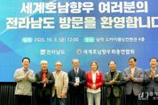 [경기뉴스원/경기뉴스1] | 세계 각국에 거주하는 호남 향우들이 글로벌 고향사랑 실천에 앞장서고 있다. 세계호남향우회 총연합회(회장 이기자)는 3일 ‘2025 세계 호남인의 날’을 기념해 전 세계 회원 250여 명과 함께 전남을 방문, 고향사랑기부금 3천만 원을 전달했다. 이번 기부는 이기자 총연합회장, 김원봉 제2대 회장, 이동수 3대 회장, 김영윤 4대 회장, 김점배 아프리카중동한인회 총연합회장, 손재민 중국호남향우회총연합회 4·5대 회장, 김용덕 동경호남향우회 11대 회장 등 주요 임원들의 참여로 이뤄졌다. 이기자 총연합회장은 “고향에 대한 그리움과 깊은 애정을 담아 기부금을 마련했다”며 “고향 발전에 보탬이 돼 기쁘고, 언제나 전남 발전을 응원한다”고 말했다. 김영록 전남도지사는 “향우들께서 해외에서도 호남인의 긍지를 지키면서 고향 발전을 위해 지속해서 힘을 보태주고, 전남에 어려움이 있을 때마다 앞장서준 것에 깊은 감사의 뜻을 전한다”며 “고향을 향한 각별한 관심과 성원에 보답하도록 최선을 다하겠다”고 말했다. 세계호남향우회총연합회는 2013년 창설돼 27개 나라 75개 지역