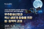 [경기뉴스원/경기뉴스1] | 경상국립대학교(GNU·총장 권진회) 법과대학은 11월 28일 오후 1시 가좌캠퍼스 법과대학 대경학술관 1층 모의법정실(252동 101호)에서 ‘우주항공산업과 혁신 생태계 창출을 위한 법·정책적 과제’라는 주제로 경상국립대학교 법학연구소, 한국항공우주정책·법학회와 공동학술대회를 개최한다. 이번 학술대회는 경상국립대학교 경남우주항공방산과학기술원(GADIST)이 후원한다. 행사에는 권진회 총장을 비롯해 조성제 법과대학장, 이근영 학회장(한국항공우주정책·법학회), 박성민 법학연구소장 등 내빈과 발제자, 토론자, 전문가 패널이 참석한다. 행사는 내빈 소개, 인사말, 축사, 제1부 항공법 정책 세션, 제2부 우주법 정책 세션 순으로 진행된다. 제1부는 박준영 교수(경상국립대학교 법학부장)의 사회로 ‘항공법 정책’을 주제로 한 발표가 이뤄진다. 박하나 박사(국립창원대)는 ‘UAM 버티포트 조성을 위한 법제 정비와 정책적 과제’를, 이강석 교수(한서대)는 ‘ICAO 항공보안 정책의 한국화 전략’을 주제로 발표한다. 이어 김성미 교수(순천대), 서지민 교수(부산대), 송주영 교수(경상국립대), 이창재 교수(조선