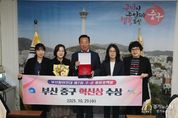 [경기뉴스원/경기뉴스1] | 부산 중구는 지난 29일 부산참여연대 강당에서 개최된 '제7회 구·군 좋은정책상'시상식에서 ‘선박화물 검수원 양성 사업’으로 ‘혁신상’을 수상했다. 올해 7회째를 맞는'구·군 좋은정책상'은 부산참여연대 주관으로 매년 10월 29일 지방자치의 날을 기념하여 주민 삶의 질 향상에 기여한 정책을 추진한 기초지자체에게 수여하는 상으로, 중구는 올해 처음 이 상을 수상했다. 중구는 전국 최초로 선박화물 검수원 양성을 위한 교육훈련을 실시하고 관내 기업체에 취업을 연계해 주는‘선박화물 검수원 양성 사업’을 통해 기업체와 구직자가 동반 성장할 수 있는 지역 맞춤 일자리를 창출했다. 최진봉 중구청장은 “모든 구민이 중구에서 행복하게 살 수 있도록앞으로도 혁신적이고 좋은 정책들을 지속적으로 발굴하고 추진하겠다.”라고 밝혔다.