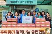 [경기뉴스원/경기뉴스1] | 의정부시 의정부2동주민센터는 9월 30일 관내 저소득 취약가구 45세대를 대상으로 ‘추석맞이 행복나눔 송편전달’ 행사를 진행했다. 이번 행사는 민족 최대의 명절인 추석을 맞아 어려운 이웃들과 따뜻한 정을 나누고, 명절 소외감을 해소하기 위해 마련됐다. 의정부2동 지역사회보장협의체 위원들이 직접 가정을 방문해 송편을 전달하며 안부를 확인하고, 각 가구에 필요한 복지서비스가 적절히 연계‧지원되고 있는지 점검하는 시간도 가졌다. 지명준 위원장은 “이웃을 생각하는 마음으로 준비한 송편을 드시며 따뜻한 정을 느끼고, 건강하고 행복한 명절을 보내시길 바란다”고 전했다. 조미경 동장은 “이번 송편 나눔이 취약가구 이웃들이 따뜻한 명절을 보내는 계기가 되길 바란다”며 “앞으로도 주민들의 복지 수요를 꼼꼼히 살피며 필요한 서비스를 적시에 제공할 수 있도록 최선을 다하겠다”고 말했다.