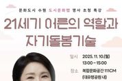[경기뉴스원/경기뉴스1] | 수원문화재단이 오는 11월 10일 월요일 오후 1시, 복합문화공간 111CM에서 심리학 전문가 이호선 교수를 초청해 시민 대상 인문심리 특강 “21세기 어른의 역할과 자기돌봄 기술”을 개최한다. 이번 강연은 문화도시 조성사업 중 ‘도시문화랩’의 일환으로 마련됐다. ‘도시문화랩’은 외로움, 고립 등 현대 도시의 사회적 문제를 문화적으로 완화하기 위한 프로젝트로, ‘서로를 살피고 문제에 맞서는 문화도시 수원’이라는 비전을 바탕으로 건강한 도시문화 형성을 위해 다양한 프로그램을 운영하는 사업이다. 11월 특강에서는 세대 간 이해, 올바른 상호 소통법, 마음건강 관리법 등을 다룰 예정이다. 이호선 교수는 숭실사이버대학교 교수이자 한국노인상담센터 센터장으로, JTBC '이혼숙려캠프', tvN '어쩌다 어른' 등 다수의 방송을 통해 대인관계와 심리 건강의 중요성을 알리며 대중적 신뢰를 쌓아온 심리학자다. 이번 강연에서는 급변하는 세대를 살아가는 어른으로서의 역할과 책임, 그리고 스스로를 돌보며 건강하게 관계를 이어가는 방법을 심리학적으로 풀어낸다. 수원문화재단 관계자는 “이번 도시문화랩 명사초