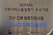 [경기뉴스원/경기뉴스1] | 대구 서구지역자활센터는 보건복지부 주관 2025년 가사·간병 방문지원사업 품질 평가에서 전국 349개소 중 상위 9개소에 해당하는‘우수 기관’으로 선정됐다. 이번 평가는 ▲기관 운영 ▲제공 인력 및 인적자원관리 ▲서비스 제공 및 평가 ▲서비스 성과 ▲현장 평가단 등 5개 영역에서 실시됐으며, 서구지역자활센터는 전 영역에서 90점 이상의 높은 점수를 획득하며 탁월한 운영 역량을 입증했다. 우수 기관으로 선정된 서구지역자활센터는 포상금과 함께 보건복지부 장관 상장, 우수 기관 현판을 수여받는 영예를 안았다. 이는 지역사회 내 돌봄서비스의 질적 향상과 지속 가능한 가사간병방문지원사업 운영에 큰 동력을 제공할 것으로 기대된다. 류한국 서구청장은 “앞으로도 가사·간병 방문 지원 서비스 대상자에게 질 높은 서비스를 제공하고, 제공 인력인 요양보호사들에게 건강하고 내실 있는 일자리를 제공할 수 있도록 서구지역자활센터를 지속적으로 지원하겠다.”라고 밝혔다.