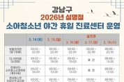 [경기뉴스원/경기뉴스1] | 꿈이 모이는 도시, 미래를 그리는 강남구가 2월 14일부터 18일까지 설 연휴 기간 환자 발생에 대비해 비상진료체계를 구축한다. 최근 한랭·건조한 날씨가 이어지면서 독감 등 호흡기 질환 환자가 늘어, 설 연휴 기간 진료 수요도 증가할 것으로 예상된다. 연휴 동안 경증 환자가 제때 진료받을 수 있도록 보건소 비상진료반을 중심으로 문 여는 병·의원과 약국 지정 운영, 소아청소년 야간·휴일 진료센터 운영을 병행해 응급의료 공백을 줄인다는 계획이다. 보건소 비상진료반은 2월 14~18일 9시부터 18시까지 운영한다. 설 당일인 17일에는 보건소를 개방해 오전 9시부터 오후 6시까지 의사 1명과 간호사 1명이 근무하며 경증 환자를 진료하고, 중증 환자는 응급의료기관과 응급실로 안내한다. 설 당일을 제외한 14~16일과 18일은 자택대기조로 운영해 비상 상황 발생 시 1시간 이내 출근 체계를 유지한다. 연휴 기간 의료 공백을 최소화하기 위해 24시간 비상진료대책 상황실도 운영한다. 주간(오전 9시~오후 6시)에는 보건소 1층 상황실에서, 야간(오후 6시~익일 오전 9시)에는 구청 종합상황실과