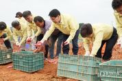 [경기뉴스원/경기뉴스1] | 심덕섭 고창군수는 8일 공음면 건동리 일원 1만6528㎡(약 5000평) 규모의 고구마 수확 현장을 방문해 생산 농가를 격려하고 애로사항을 청취했다. 이날 방문에는 심덕섭 고창군수, 조민규 고창군의회 군의장 및 군의원, 농업분야 관계 공무원, 고구마 재배농가, 당산마을 주민 등 30여 명이 함께했다. 고창군은 서늘한 해풍과 풍부한 일조량, 게르마늄과 미네랄이 풍부한 황토지대를 기반으로 고구마 재배에 최적의 조건을 갖춘 전북 최대의 명품 꿀고구마 산지다. 현재 약 600여 농가가 총 1400여㏊ 면적에서 고구마를 재배하고 있다. 김헌동 농가는 지난 4월6일부터 정식을 시작해 5월25일까지 약 70만 평 규모에 국내 인기 품종인 ‘호풍미’, ‘베니하루까’를 심었으며, 앞으로 약 5000톤 가량의 고구마를 수확할 계획이다. 수확된 고구마는 쿠팡, 롯데마트 등 전국 대형 유통채널에 납품될 계획이다. 고창 고구마의 우수한 품질은 이미 시장에서 입증되고 있다. 롯데웰푸드는 고창 고구마를 활용한 빈츠·마가렛트·카스타드·빵빠레·찰떡아이스 등 13종
