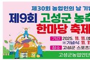 [경기뉴스원/경기뉴스1] | 고성군은 오는 11월 11일부터 12일까지 고성군스포츠타운 4구장에서 ‘제30회 농업인의 날 기념, 제9회 고성군 농축산물 한마당 축제’를 개최한다. 이번 행사는 고성군농업인단체협의회(회장 오태호) 주관, 고성군 후원으로 열리며, 농업인의 자긍심을 높이고 지역 농축산물 소비 촉진을 위해 마련됐다. 축제는 기념식과 축하공연, 농축산물 홍보 및 판매, 무료 시식회, 전시·체험 행사, 귀농귀촌·청년농업인·고향사랑기부제 홍보 등 다채로운 프로그램으로 구성된다. 11일(화) 오전 10시부터 농축산물 직거래장터와 전시행사가 시작되며, 오전 10시 30분에는 여성농민회의 오카리나 연주와 퓨전국악 ‘화온’의 식전공연이 펼쳐진다. 이어 오전 11시에는 내빈소개, 개회선언, 국민의례, 유공자 시상(군수 2명, 의장 2명, NH농협고성군지부장 1명, 감사패 2명), 기념사 및 축사, ‘고성에는 고성쌀 강정’ 퍼포먼스가 진행된다. 오후에는 맥주 빨리 마시기 이벤트를 시작으로 트로트가수 한아름, 윤이나, 서백의 공연과 생활개선회의 난타, 전자현악그룹 아이리, 퍼포먼스팀 해피니스의 무대가 이어지며, 축제 분