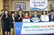 [경기뉴스원/경기뉴스1] | 광명시가 경기도가 선정하는 인권 행정추진 우수 기관으로 3년 연속 선정되며 인권 선도 도시로 확고히 자리매김했다. 시는 지난 9월 30일 경기도청 다산홀에서 열린 ‘2025년 경기인권포럼’에서 경기도 인권 행정추진 우수 자치단체 경기도지사 표창을 받았다. 경기도는 31개 시군을 대상으로 인권행정 제도와 정책 추진 성과를 종합 평가해 5개 우수 자치단체를 선정했으며, 광명시는 평가 제도가 도입된 2023년부터 올해까지 매년 수상하는 성과를 거뒀다. 이번 수상은 ▲인권행정 제도 구축(인권조례제정, 인권위원회 구성 및 운영, 인권교육 실시 등), ▲인권정책 수립(인권기본계획 수립 및 연도별 시행계획 수립, 인권실태조사 및 인권영향평가, 인권문화행사 등) ▲지역사회 인권증진 활동 ▲시민 인권 보장과 존중 문화 확산 등 전반적 성과를 전문가들로부터 인정받은 결과다. 광명시는 2012년 지방자치단체 최초로 ‘광명시민인권센터’를 개소하고, ‘인권보장 및 증진 5개년 기본계획’ 수립하는 등 인권 친화적 행정의 기틀을 마련해 왔다. 특히 인권기본계획에 재개발·재건축이 많은