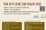 [경기뉴스원/경기뉴스1] | 인천광역시교육청평생학습관은 오는 11월 운영되는 단기 프로그램의 수강생을 모집한다. 이번 프로그램은 AI(인공지능)·디지털 활용 능력 강화와 인문소양 증진을 주제로 시민들이 짧은 기간 내 배움을 얻을 수 있도록 기획됐다. 운영 강좌는 ▲스마트폰영상편집2 ▲AI(인공지능)와 함께 만드는 그림책2 ▲AI(인공지능)를 활용한 작사·작곡하기2 ▲(시니어) 연말연시는 숏츠와 함께 영상 카드 만들기 ▲한국미술 시대를 잇다: 전통에서 발견하는 현대 등 5개다. 디지털 역량 강좌 4개는 급변하는 환경에 대응해 시민의 정보 활용 능력을 높이는 데 중점을 두었으며, 인문교양 강좌는 전통과 현대미술을 잇는 인문학적 접근을 통해 문화 감수성을 높이는 기회를 제공한다. 수강 신청은 10월 23일 오전 10시부터 평생학습관 누리집에서 가능하며, 자세한 사항은 공지사항에서 확인하거나 평생교육부로 문의하면 된다.
