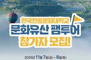 [경기뉴스원/경기뉴스1] | 국가유산청 한국전통문화대학교는 11월 7일부터 8일까지 대학 캠퍼스(충남 부여군)와 부여군 일대에서 전국 고등학생과 학부모를 대상으로 전통문화와 문화유산의 가치를 직접 체험할 수 있는 '2025 한국전통문화대학교 문화유산 팸투어'를 운영한다. 이번 행사는 전통문화 교육의 산실인 한국전통문화대학교 곳곳을 소개하고, 전통문화와 문화유산에 대한 이해와 공감대를 형성하기 위해 마련됐다. 첫날인 11월 7일에는 대학입학 설명회와 함께 캠퍼스 탐방 등이 진행되며, 둘째 날인 8일에는 부여의 자연경관을 조망할 수 있는 열기구 체험, 천연기념물 '부여 가림성 느티나무'(성흥산 사랑나무), 사적 '부여 궁남지' 등 부여군 일대의 국가유산 탐방, 학예사와 함께 하는 국립부여박물관 전시 관람 등의 프로그램이 운영된다. 참가 대상은 전국 고등학교 1·2학년 학생과 학부모 총 10팀(20명)이며, 신청은 11월 2일까지 한국전통문화대학교 누리집 또는 공식 인스타그램의 참가자 모집 신청 주소를 통해 가능하다. 진로를 탐색하는 학생들이 학부모와 함께 한국전통문화대학교의 미래 비전과 학교생활을 미리