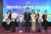 [경기뉴스원/경기뉴스1] | 충청북도교육청은 12일, 청주 엔포드호텔에서 '2025. 영유아학교 시범사업 성과공유회'를 성황리에 개최했다. 영유아학교 시범사업 운영 성과를 공유하고, 영유아의 온전한 성장과 발달을 지원하기 위한 현장 중심의 소통과 성찰의 장으로 마련됐다. 이날 행사에는 충북교육청 및 육아종합지원센터 관계자, 영유아학교 시범학교 및 시범사업 운영 기관 교직원 등 약 200명이 참석하여 시범사업 운영 경험을 공유하고 발전 방향을 함께 모색했다. 특히, 변혜경 국공립유치원연합회장, 이옥주 사립유치원연합회장, 성락준 어린이집연합회장이 모두 참석하여 영유아학교 시범사업 운영에 관심을 보였다. 행사는 시범학교 운영기관인 예광유치원 유아들이 선보인 난타공연으로 시작됐으며, 이어 영유아교육 정책 추진에 기여한 교직원에게 유공 표창을 전달했다. 박창현 육아정책연구소 연구원은 '유보통합, 질적 전환의 관점에서 다시 묻다: 최상의 교육‧보육이란 무엇인가?'를 주제로 특강을 진행했으며, 영유아교육의 질 제고와 보육‧교육의 조화로운 방향성에 대해 시사점을 제시했다. 이어, ▲언제나 책봄 이음책