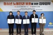 [경기뉴스원/경기뉴스1] | 울산광역시교육청은 12일 오후 2시 접견실에서 관계 기관과 울산지역 청소년의 노동 권익 보호와 노동환경 개선을 위한 업무협약을 맺었다. 협약에는 (사)한국공인노무사회, 북구비정규직노동자지원센터, 울산광역시동구비정규직노동자지원센터, 울산근로자이음센터가 참여했다. 이번 협약은 청소년이 안전하고 존중받는 노동환경 속에서 성장할 수 있도록 지역사회와 함께 노동 권익 침해를 예방하고, 종합적인 지원 체계를 마련하고자 추진됐다. 이들 기관은 청소년 노동 문제 무료 상담, 상호 정보 공유와 협력 강화, 기관 간 관계망 활성화, 지역사회 연계 노동인권 사업 추진 등에서 긴밀히 협력하기로 했다. 울산교육청은 이번 협약으로 청소년들이 노동환경 문제에 대해 올바른 실천 의식을 기를 수 있도록 지원하는 한편, 실제 취업 현장에서 겪을 수 있는 권익 침해 상황에 효과적으로 대응할 수 있도록 돕는 데 중점을 둘 예정이다. 또한 학생인권지원센터와 협약 기관이 공동으로 노동 상담 업무를 맡아 학생 노동 문제 해결을 위한 체계적인 지원을 강화할 계획이다. 아울러 전문성이 강화