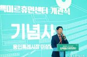 [경기뉴스원/경기뉴스1] | 용인특례시는 2일 오후 기흥구 동백동 지역 주민들을 위한 ‘동백미르휴먼센터’ 개관식을 개최했다. 이곳에는 수영장 등 생활체육 시설, 청소년 문화활동 시설, 어르신 복지 시설, 장애인 돌봄 시설, 평생학습 시설 등이 갖춰졌다. 이상일 시장은 개관식에서 “2008년 부지 매입 후 시설 건립까지 18년이나 걸렸는데, 오랜 세월을 기다려 주신 시민들께 감사 인사를 드리면서 축하의 뜻도 전한다”고 말했다. 이 시장은 "기다림이 컸던 만큼 동백미르휴먼센터를 잘 짓기 위해 노력했다"며 "이곳은 문화·체육·교육·복지 등이 함께 하는 전 세대 맞춤형 복합시설로 좋은 공간과 설비를 잘 갖추고 있으니 자주 마음껏 이용해 주시기 바란다"고 했다. 이 시장은 "이용하시면서 개선할 것 등에 대한 의견도 말씀해 주시면 적극 검토하겠다"며 "시는 이처럼 훌륭한 시설이 다른 여러 지역에도 건립될 수 있도록 부지와 예산을 확보하는 노력을 기울이겠다"고 했다. 이 시장은 이날 ‘동백미르휴먼센터’가 성공적으로 개관할 수 있도록 기여한 인사들에게 표창장을 수여하고, 입주한 시설 관계자에게 ‘함께