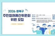 [경기뉴스원/경기뉴스1] | 서울 성북구가 오는 13일까지 주민 참여를 통한 지역 현안 해결과 재정 민주주의 실현을 위해 2026년 주민참여예산위원회 위원을 공개 모집한다. 주민참여예산제는 주민이 직접 사업을 제안하고 예산편성 과정에 직접 참여함으로써 투명성과 효율성을 높이기 위해 마련된 제도다. 2026년 성북구 주민참여예산 사업 규모는 총 15억으로, 구 단위 사업 10억과 동 단위 사업은 5억이다. 구 단위 사업은 2개 동 이상에 해당하며 사업당 2천만 원 이상 최대 2억 미만, 동 단위 사업은 1개 동에 해당하는 사업으로 사업당 1천만 원 이상 사업으로 진행될 예정이다. 올해 모집 인원은 총 7명으로, 공개 모집과 동 추천 인원으로 모집 후 선정한다. 신청 자격은 공고일 현재 성북구에 주소를 둔 주민 또는 성북구 소재 기관에 근무하거나 재학 중인 사람이다. 예산위원을 희망하는 구민은 2월 19일부터 운영하는 ‘성북구 주민참여예산학교’에 참여하면 된다. 구는 참여예산학교 온라인 강의를 개설하여 참여예산에 관심있는 주민들이 상시 강의를 들을 수 있도록 했다. 추후 오프라인 교육을 통해 참여예산