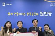 [경기뉴스원/경기뉴스1] | 지난 17일 경기중앙지방법무사회 수원지부는 원천동 저소득 지역주민들을 돕기 위해 성금 100만 원을 원천동행정복지센터(동장 김선혁)에 후원했다. 이번에 전달된 성금은 경제적 어려움을 겪고 있는 원천동 저소득 지역주민들을 위해 사용될 예정으로, 지역사회 나눔 문화 확산에 기여할 것으로 기대된다. 경기중앙지방법무사회 수원지부 관계자는 “작은 정성이지만 지역 내 어려운 이웃들에게 도움이 되길 바란다”며 “앞으로도 지역사회와 함께하는 다양한 나눔 활동을 지속해 나가겠다”고 밝혔다. 김선혁 원천동장은 “어려운 이웃을 위한 따뜻한 나눔에 깊이 감사드린다”며 “후원금은 도움이 꼭 필요한 저소득 주민들을 위해 소중히 사용하겠다”고 전했다. 한편, 경기중앙지방법무사회 수원지부는 매년 꾸준히 성금을 전달하여 지역사회 복지 증진을 위해 힘쓰고 있다.