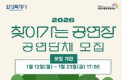 [경기뉴스원/경기뉴스1] | (재)화성시문화관광재단은 1월 12일부터 1월 23일까지 ‘2026 찾아가는공연장’ 참여 공연단체를 모집한다고 밝혔다. ‘찾아가는 공연장’은 화성시의 곳곳에서 다양한 장르의 공연을 제공함으로써 시민들의 일상적인 문화예술 관람을 돕기 위한 사업으로, 2009년부터 시작된 화성시문화관광재단의 대표 문화사업 중 하나다. 지난 2025년도에는 공개 모집을 통해 40개의 공연단체를 선정했으며, 문화취약계층에 방문공연, 공원 광장 거리공연 등을 통해 다양한 장르의 공연으로 화성시민과 함께했다. ‘2026 찾아가는 공연장’은 약 140회차의 공연을 목표로 운영된다. 이번 공연단체 모집은 3년 이상의 공연활동 경력이 있는 공연단체라면 지역, 장르에 상관없이 신청가능하다. 접수는 1월 12일부터 23일까지 온라인으로만 가능하며, 1차 서류‧영상 심사, 2월 9일~10일 2차 실연‧면담 심사를 거쳐 2월 12일에 최종 선정단체 총 35팀을 발표할 예정이다. 화성시문화관광재단 안필연 대표이사는 “지역과 장르의 제한을 두지 않는 만큼, 화성시 곳곳에서 재능을 뽐내줄 다양한 예술 공연단체들의 많은 관심과