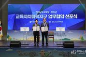 [경기뉴스원/경기뉴스1] | 진도군은 지난 11월 5일에 전라남도교육청과 ‘전라남도 교육자치협력지구 운영 업무협약’을 체결했다고 밝혔다. 이번 협약식은 진도교육지원청에서 주최하는 ‘2025 보배섬 진도 글로컬 교육축전’이 열리고 있는 진도실내체육관에서 진행됐으며, 김희수 진도군수, 김대중 전라남도교육감, 박금례 진도군의회의장과 군의원, 전라남도교육청과 진도교육지원청 관계자, 학부모, 학생들이 참석했다. 이번 협약은 지역사회와 학교가 함께 성장하는 지속 가능한 교육생태계를 구축하는 것을 목표로 한다. 업무협약의 주요 내용은 ▲교육 발전과 지역교육 활성화를 위한 상호 협력 ▲교육자치협력지구 사업의 행‧재정적 지원 ▲지역 인재 육성 프로그램 공동 추진 등으로 협약은 2026년부터 2029년까지 4년 동안 유지된다. 김희수 진도군수는 “민선 8기 군정 방침인 ‘인재를 키우는 교육’을 실현하기 위해 인재육성 장학사업과 교육경비 예산을 대폭 확대하고 있다”라며, “앞으로도 교육청과 협력해 학생들이 마음껏 꿈을 펼칠 수 있는 교육환경을 조성하겠다”라고 말했다. 이어 “진도는 대몽항쟁과 명량대첩의 역