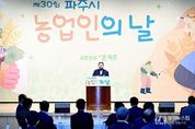 [경기뉴스원/경기뉴스1] | 파주시는 ‘제30회 농업인의 날’을 맞아 농업인들의 노고를 격려하고 자긍심을 고취하고자 지난 11일 시민회관 대공연장에서 농업인과 시민이 함께하는 기념행사를 개최했다고 밝혔다. 이날 행사에는 김경일 파주시장을 비롯해 박정 국회의원, 박대성 파주시의회 의장, 시의원, 이학필 농협중앙회 파주시지부장 등 유관기관 단체장, 김웅기 파주시농업인단체협의회장 및 농업인 등 350여 명이 참석했다. 행사는 파주시립예술단의 공연으로 막을 올렸으며, 김웅기 한국농촌지도자 파주시연합회장이 제30회 농업인의 날 유공 국무총리 표창을 파주시장으로부터 전수받았다. 이어 고품질 쌀 생산 부문 등 5개 분야에서 선발된 농어민대상 수상자 5명과 파주시 농업 발전에 기여한 우수농업인, 유관기관 관계자, 읍면지역 공무원 등 총 50명 대한 시상식이 진행됐다. 김경일 파주시장은 “고물가, 이상기후, 농촌 고령화 등 어려운 여건 속에서도 안전한 먹거리를 위해 파주시 농업을 지켜온 농업인 여러분께 깊은 감사와 존경의 마음을 전한다”라며 “앞으로도 농업인의 안정적 소득과 지속 가능한 농업 발전을 위해 다양한 지원 정책 마련