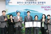 [경기뉴스원/경기뉴스1] | 광주시는 30일 시청 비전홀에서 광주하남교육지원청과 지역교육 협력 강화를 위한 ‘광주시–경기공유학교 학교 맞춤형 업무협약’을 체결했다. 이날 협약식에는 방세환 시장과 오성애 교육장을 비롯해 양 기관 관계자들이 참석했다. 이번 협약은 기존 ‘광주미래교육협력지구’ 사업이 올해 2월 종료됨에 따라 사업 명칭을 ‘경기공유학교 학교 맞춤형’으로 변경하고 광주시와 경기도교육청이 앞으로 2년간 지역 내 학교와 학생을 대상으로 맞춤형 교육지원사업과 경기공유학교 정책을 연계·추진하기 위해 마련됐다. ‘경기공유학교 학교 맞춤형’ 사업은 공공이 책임지고 지역이 함께 참여해 학교 교육을 지역으로 확장하는 공공·협력·개방·확장형 미래교육 민관 협치 참여를 의미한다. 이를 통해 지역 여건과 학교 수요를 반영한 교육 협력 체계를 구축한다는 계획이다. 현재 시는 광주하남교육지원청과 협력해 초·중·고등학생을 대상으로 학교-지역 이음 오케스트라, 온마을 체험학교(탐방·체험터·마을강사), 진로 교육 지원, 미래학교 조성 지원 등 다양한 미래교육협력지구 사업을 추진하고 있다. 양 기관은 협약 체결 이후 교