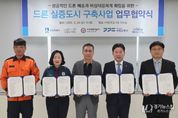 [경기뉴스원/경기뉴스1] | 수원특례시, 수원도시재단, 수원영통경찰서, 수원소방서, ㈜드론스쿨인터네셔널은 24일 더함파크에서 ‘드론 실증도시 구축 사업’ 추진을 위한 업무협약을 체결하고, 협력을 약속했다. 협약에 따라 각 기관은 ▲드론 실증도시 구축을 위한 협력체계 마련 ▲드론 배송 서비스 운영·기술 실증 ▲드론 비행 안전관리·시민 안전 확보 ▲사고 대응 모의훈련, 비상 대응체계 구축 ▲사업 홍보·성과 확산 등에 협력한다. 수원시는 사업을 총괄하고, 행정 지원을 한다. 수원도시재단은 인프라 구축과 운영 지원을 담당하고, 수원영통경찰서와 수원소방서는 드론 비행 안전관리와 사고 대응에 협력한다. ㈜드론스쿨인터네셔널은 드론 배송 운영과 플랫폼 구축 등 사업화를 추진한다. 수원시가 국토교통부 주관 ‘2026년드론실증도시 구축사업’ 공모에 선정돼 진행하는 ‘하늘 편의점과 함께하는 광교산책길 드론배송 서비스’ 실증사업과 연계해 추진한다. 광교호수공원과 광교저수지 일원에 드론 이착륙장 등 거점 2곳과 배달점 8곳을 설치하고, 시민이 모바일로 주문한 식음료와 비상 물품을 드론으로 배송할 계획이다. 이날 협약식에는