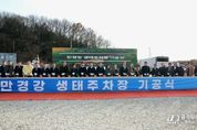 [경기뉴스원/경기뉴스1] | 완주군이 만경강을 찾는 방문객과 지역 주민들의 주차 편의를 위해 대규모 ‘생태주차장’ 조성사업을 본격 추진한다. 단순한 주차 공간을 넘어 친환경 수변 거점 공간으로 조성하겠다는 구상이다. 27일 완주군은 봉동읍 구만리 28번지 일원에서 ‘만경강 생태주차장 조성사업 기공식’을 열었다. 이날 기공식에는 유희태 완주군수를 비롯해 유의식 군의회 의장, 윤수봉, 권요안 도의원, 완주군의원, 주민 등 300여 명이 참석해 사업의 성공적인 추진을 기원했다. 만경강 생태주차장은 조성사업은 총사업비 187억 원(군비 전액)이 투입되는 대규모 프로젝트다. 조성 면적은 6만 9,883㎡에 달하며, 완공 시 승용차(소형) 953대와 대형차 47대를 포함해 총 1,000대의 차량을 동시에 수용할 수 있다. 군은 이번 사업이 만경강 일대의 주차난 해소하는 것은 물론, 각종 대규모 행사 개최 기반을 마련하고 관광객의 유치에도 큰 도움이 될 것으로 기대하고 있다. 특히 이번 사업은 산림청의 기후대응 도시숲 조성사업과 연계해 친환경성을 극대화한다. 주차장 내외부에 도심 열섬현