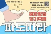 [경기뉴스원/경기뉴스1] | 울산 동구가 오는 10월 26일 오전 9시부터 11시 30분까지 일산해수욕장 상설무대 일원에서 ‘2025 해파랑길 걷기 축제 – 파도 따라 맨발 걷기’를 개최한다. 이번 행사는 문화체육관광부와 한국관광공사가 주관하는 ‘코리아둘레길 쉼터 및 지역 관광 프로그램 연계 공모사업’의 하나로 추진되는 것으로, 시민과 관광객이 함께 참여하는 가을 걷기 축제이다. ‘파도 따라 맨발 걷기’는 해파랑길 8코스 구간 중 일산해수욕장에서 대왕암공원까지 약 2km 구간을 따라 맨발로 걷는 체험형 행사로, 파도 소리와 모래의 촉감을 직접 느끼며 자연과 교감할 수 있도록 기획됐다. 특히 해파랑길 8코스는 한국관광공사가 선정한 ‘자연환경이 아름다운 첫 번째 추천 코스’로, 일산해수욕장의 백사장과 대왕암 송림이 어우러진 동구의 대표적인 명품 길로 꼽힌다. 행사 당일에는 공연, 체험 부스, 마켓 등 다양한 부대행사도 함께 진행되며, 참가자에게는 타포린 가방, 핀 버튼, 미니 생수, 간식 세트 등 기념품이 제공된다. 참가비는 1인당 5,000원이며, 사전 접수 80%, 현장 접수 20% 비율로 총 50