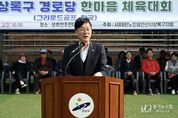 [경기뉴스원/경기뉴스1] | 안산시는 (사)대한노인회 안산시 상록구지회가 지난 30일 성호공원 대운동장에서 상록구 어르신들의 한마음 체육대회를 개최했다고 31일 밝혔다. 올해 9회째를 맞이한 이번 한마음 체육대회는 어르신들의 건전한 여가 활동을 장려하기 위해 노인지회에서 매년 주최하고 있다. 이날 상록구 관내 경로당 회원들이 한자리에 모인 가운데, 한궁과 그라운드골프 경기가 펼쳐져 화합하며 소통하는 시간이 진행됐다. 이민근 안산시장은 “안산시는 항상 어르신들의 목소리에 귀 기울이며, 어르신이 존중받고 행복하게 생활할 수 있는 도시를 만들어가겠다”며 “어르신 복지 향상과 생활 지원 정책을 더욱 강화해 나가겠다”고 말했다. 한편, 내달 18일에는 단원구 어르신들의 체육대회가 올림픽 기념관 체육관에서 열릴 예정이다.