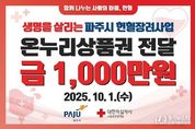 [경기뉴스원/경기뉴스1] | 파주시는 지난 1일 대한적십자사 서울중앙혈액원에 1천만 원 상당의 헌혈장려지원금 상품권을 전달했다. 시는 안정적인 혈액 공급 기반을 마련하고 지역사회 내 헌혈 참여문화를 확산하기 위해 지난달 헌혈추진협의회를 구성 회의를 개최했으며, 회의 결과에 따라 관내 헌혈자 대상 인당 1만 원 상당의 온누리상품권을 지급할 예정이다. 특히 파주시는 말라리아 헌혈 제한 지역으로, 관내 헌혈의집이 없어 헌혈버스를 통해서만 헌혈이 가능하고 동계기간인 11월~3월에 한해 전혈헌혈이 허용되는 등 여러 제약이 있다. 이러한 어려운 여건 속에서도 시민들의 헌혈 참여를 확대하기 위해, 국내 말라리아 헌혈 제한 지역 중 최초로 헌혈장려금을 지원하게 됐다. 이한상 파주보건소장은 “헌혈장려지원금 지급이 혈액 수급 안정화와 헌혈 참여문화 확산에 기여하는 계기가 되길 기대한다”라고 밝혔다.