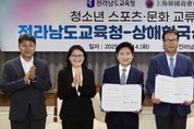 [경기뉴스원/경기뉴스1] | 전라남도교육청은 14일 상해한국상회와 ‘청소년 스포츠·문화 교류를 위한 업무협약(MOU)’을 체결했다. 이번 협약은 전남 학생들과 상해 지역 한국 청소년들이 스포츠를 매개로 협동심과 리더십을 기르고, 문화·역사 체험을 통해 세계시민 의식과 정체성을 키우기 위해 추진됐다. 양 기관은 앞으로 ▲ 청소년 스포츠 교류전 참가 협력 ▲ 현지 역사·문화 체험 프로그램 지원 ▲ 글로컬 인재 양성을 위한 국제교류 운영 ▲ 교육·체육 분야 행사 및 정보 공유 등을 추진할 예정이다. 특히, 상해는 일제강점기 대한민국 임시정부가 수립된 역사적인 도시로, 청소년들이 우리 민족의 독립정신과 애국심을 배울 수 있어 교육적으로 의미가 깊은 곳이다. 상해한국상회는 풍부한 경험과 인적·사회적 자산을 바탕으로 ▲ 청소년 교육 프로그램에 대한 전략적 투자 ▲ 한중 양국의 한국 학생 간의 지속 가능한 교류 ▲ 지역사회 네트워크를 활용한 교육 콘텐츠 재생산 등 교육 협력의 새로운 모델을 제시할 예정이다. 전남교육청은 전남의 학생들이 세계와 소통하며 미래를 준비할 수 있도록 교육 외교의 장을 넓히