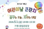 [경기뉴스원/경기뉴스1] | 가평군은 오는 5월 1일 오전 10시 가평종합운동장에서 ‘제15회 가평군 어린이날 기념행사’를 개최한다. 가평군어린이집연합회와 가평군육아종합지원센터가 공동 주관하는 이번 축제는 기념행사와 공연, 놀이, 체험 부스 등 다채로운 프로그램으로 꾸며진다. 행사는 조종청소년오케스트라의 식전 공연으로 막을 올린다. 이어지는 본행사에서는 어린이 대표의 어린이 헌장 선언문 낭독과 군수 및 군의장의 기념사·축사, 공동 주관 기관장들의 개회 선언이 진행된다. 어린이날 유공자 및 모범어린이 6명에 대한 표창은 행사 이후인 5월 4일 가평군 월례조회 시 별도로 수여할 계획이다. 현장에는 가평경찰서, 교육지원청, 보건소 등 17개 기관과 단체가 참여해 총 26개의 체험 및 홍보 부스를 운영한다. 주요 행사는 △문화다양성 이해교육 △에코백 만들기 △장난감 수리 및 진단 등이며, 에어바운스와 페이스 페인팅 등 놀이 시설도 함께 운영한다. 가족 단위 방문객을 위한 맞춤형 프로그램도 풍성하다. 시간대별로 영유아 보물찾기, 초등학생 프리킥 챌린지를 비롯해 아빠 로켓 던지기와 엄마 림보 이벤트 등 온 가족이 참여할