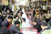 [경기뉴스원/경기뉴스1] | 충북 단양군 단양구경시장에서 지역민과 관광객이 함께 어우러진 ‘제13회 가래떡데이 한마당 대축제’가 성황리에 열렸다. 지난 11일 단양구경시장 내 문화광장에서 열린 이번 행사는 단양구경시장상인회 주관으로 진행됐다. 올해로 13회를 맞은 가래떡데이 한마당은 지역 상권과 주민이 함께하는 소통과 나눔의 축제로 자리매김했으며, 300여 명의 주민과 관광객이 참여해 뜨거운 열기 속에 펼쳐졌다. 식전공연으로 아랑고고장구단의 힘찬 북소리가 울려 퍼지며 축제의 시작을 알렸고, 전통시장만의 흥겨운 정취 속에서 다채로운 프로그램이 이어졌다. 특히 단양시장의 명물인 ‘장보고북’ 타고 행사가 진행돼 눈길을 끌었다. ‘장보고북’은 북을 세 번 두드리면 소원이 이루어진다는 속설로 전해지며, 전통시장의 상징적인 볼거리로 자리잡고 있다. 이날의 하이라이트는 111m에 달하는 초대형 가래떡 커팅식이었다. 지역 주민과 관광객이 힘을 모아 가래떡을 뽑고 직접 나누며 웃음이 넘쳤고, 정성껏 준비한 따뜻한 떡을 함께 나누는 시간에는 박수와 환호가 이어졌다.