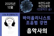 [경기뉴스원/경기뉴스1] | 평택시립 비전도서관이 오는 12월 18일 저녁 7시 조윤범 바이올리니스트를 초청하여 ‘음악사의 하이라이트’를 주제로 야간 인문학 강연을 진행한다. ‘음악사의 하이라이트’는 방대한 서양 음악사의 흐름을 2시간으로 압축하여 마치 영화를 보듯 자연스럽게 이해할 수 있는 강연이다. 각 시대의 대표적인 사건과 음악적 변화를 통해 클래식을 깊이 있고 풍부하게 만날 소중한 기회가 될 것으로 기대된다. 조윤범 바이올리니스트는 콰르텟엑스의 리더이자 편곡자, 저자, 음악 해설가, 방송진행자로 '콰르텟엑스와 함께하는 조윤범의 파워클래식', CBS음악FM '아름다운 당신에게', KBS1TV '문화책갈피'의 '청바지를 입은 클래식', MBC라디오 '굿모닝FM'의 클래식 음악 코너, tvN '어쩌다 어른'에서 진행과 강연을 통해 클래식의 대중화에 앞장섰으며, 최근에는 EBS1 '나의 두 번째 교과서' 음악편에서 10강에 걸친 방송을 진행해 큰 호응을 얻고 있다. 지은 책으로는 '조윤범의 파워클래식 1, 2권', '나는 왜 감동하는가', '클래식 A-yo'가 있다.